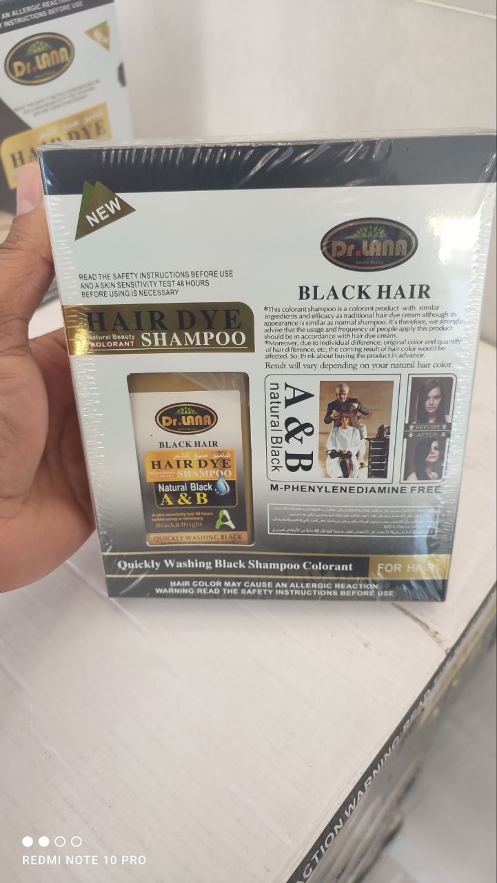 شامپو رنگ لانا دارای دو تیوپ 120 میل است. این شامپو به صورت همزمان استفاده و بعد از 10 دقیقه موهای شما به رنگ مشکی طبیعی تغیر رنگ پیدا میکند.
